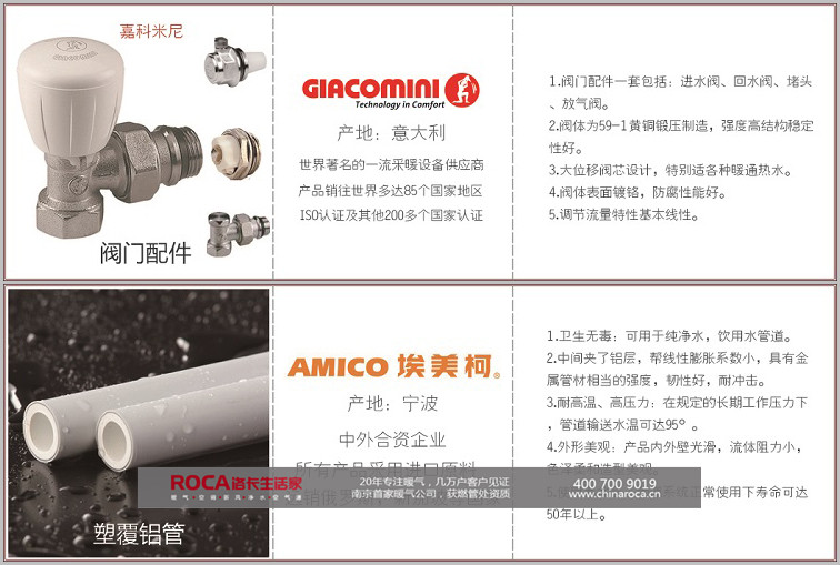 埃美柯PPR塑覆铝管800米+维多利亚铸铝暖气片1200柱+意大利嘉科米尼阀门配件80套