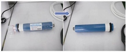RO反渗透膜:将外面的塑料撕掉即可(蓝色和商标不用撕)