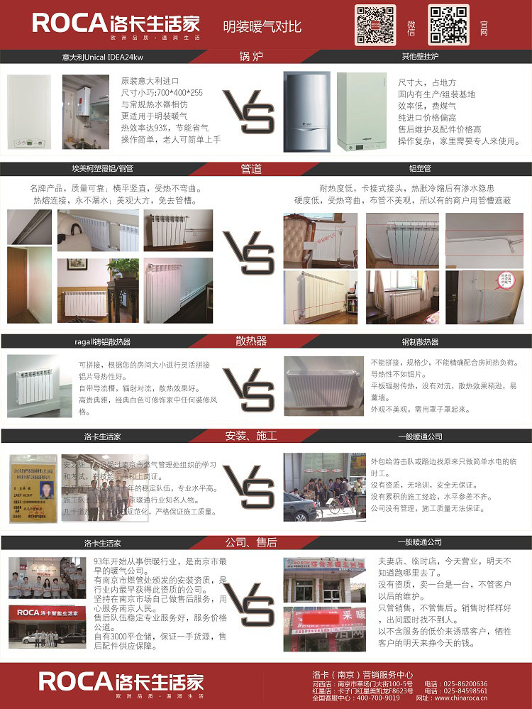 洛卡明装暖气与南京市面上常见的暖气店对比: